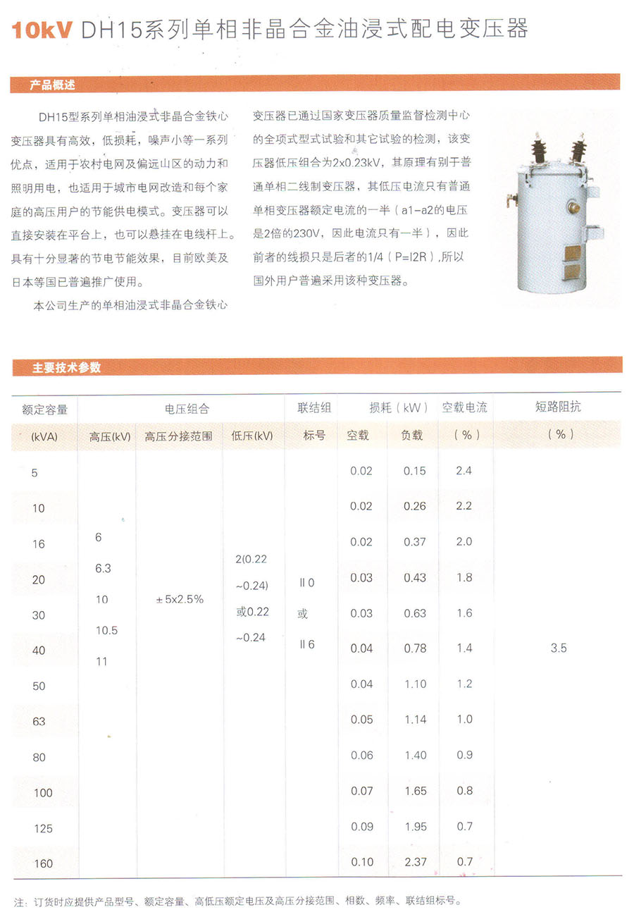 10kV DH15系列单相非晶合金油浸式配电变压器
