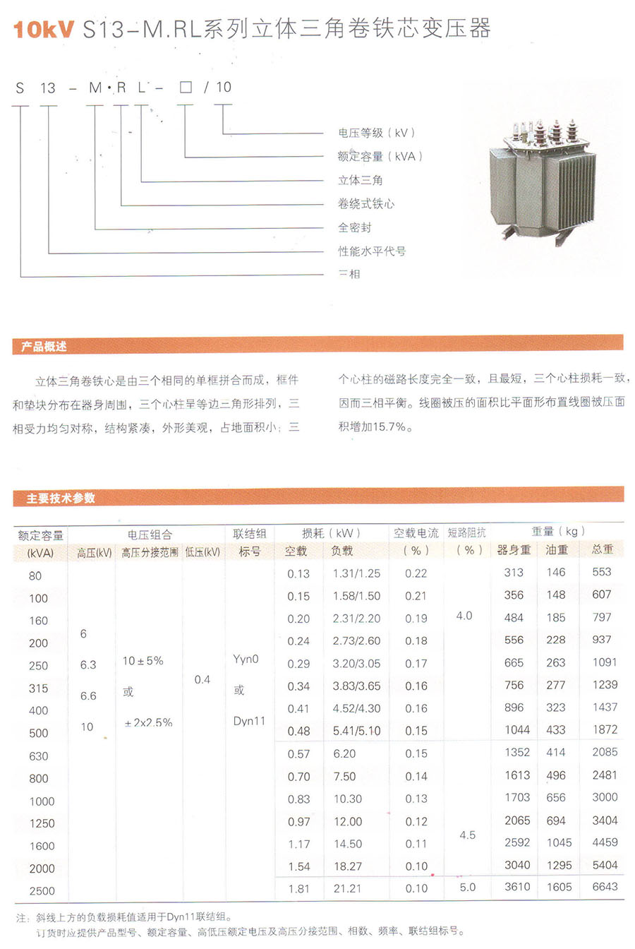 10kV S13-M.RL系列立体三角卷铁芯变压器