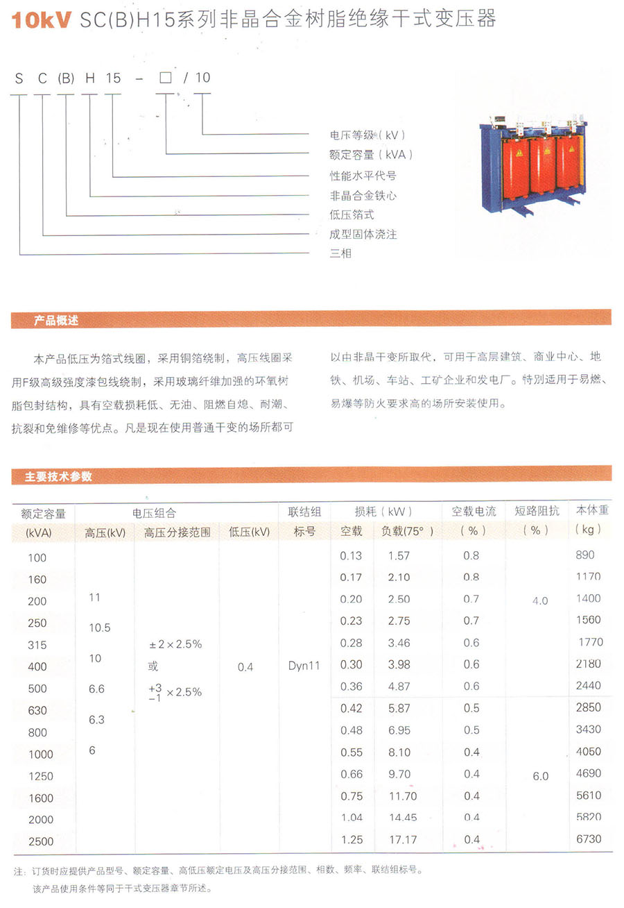 10kV SC(B)H15系列非晶合金树脂绝缘干式变压器