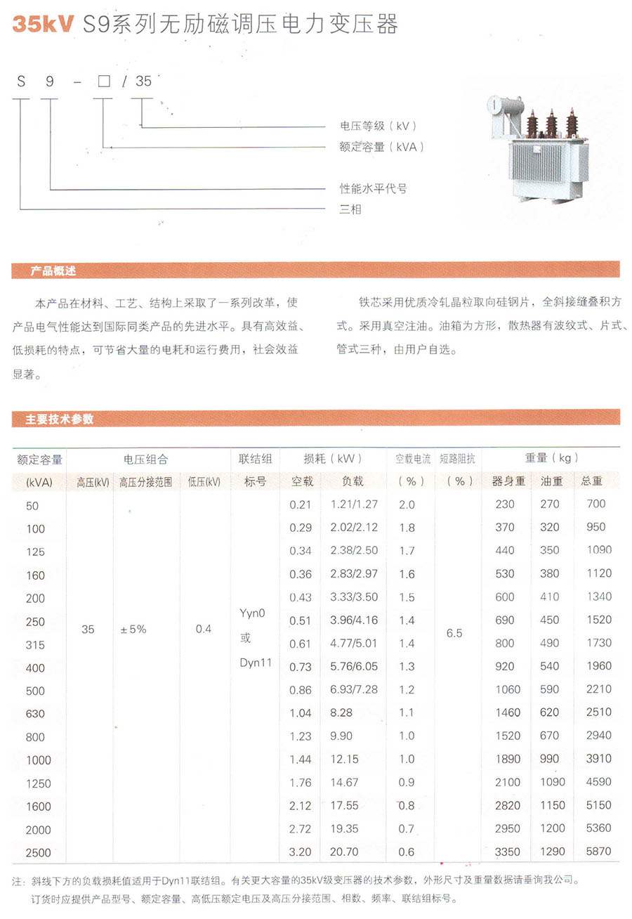 35kV S9系列无励磁调压电力变压器