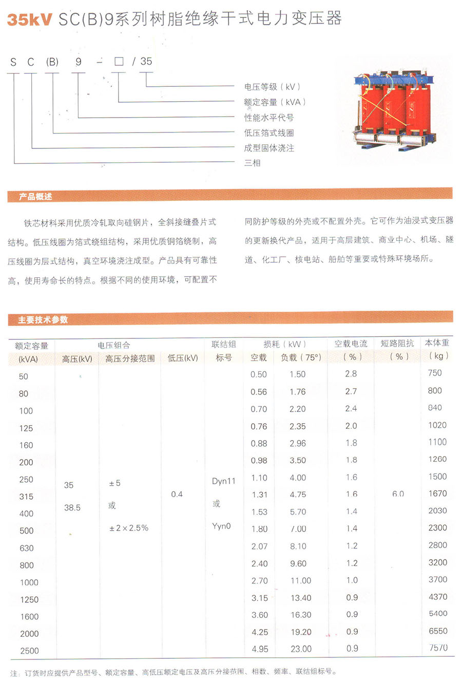 35kV SC(B)9系列树脂绝缘干式电力变压器