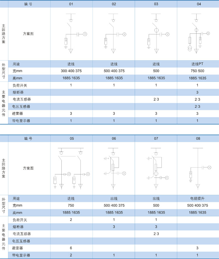 环网柜为金属铠装封闭式,柜内为空气绝缘,具有终端变电站接线及适应环网供电的接线。
